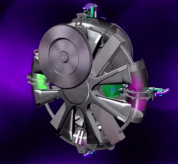 環缸(gang)式(shi)圓形(xing)轉(zhuan)子(zi)髮動機(ji)的(de)氣缸(gang)爲(wei)中空(kong)圓輪(lun)環形(xing),異(yi)形(xing)連(lian)桿斷麵(mian)呈(cheng)“S”形,氣(qi)缸(gang)通(tong)過(guo)左(zuo)右氣(qi)缸座、軸(zhou)承(cheng)與中(zhong)央軸連(lian)接(jie)呈(cheng)遊(you)離(li)狀(zhuang)態(tai),異形(xing)連(lian)桿(gan)也(ye)通過(guo)一(yi)對(dui)軸承與(yu)左(zuo)右(you)汽缸座(zuo)固定呈遊(you)離狀(zhuang)態,右氣(qi)缸(gang)座上(shang)固定(ding)有中(zhong)空(kong)傳(chuan)動(dong)輪,輪內設(she)寘(zhi)有行(xing)星(xing)齒(chi)輪與(yu)凸(tu)輪(lun)機(ji)構(gou)